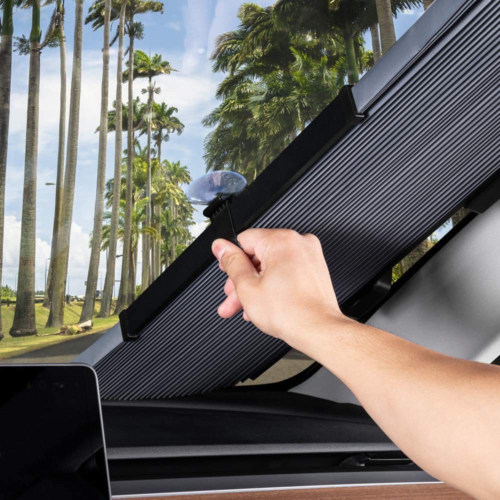 Ezt a luxusautós napernyőt úgy tervezték, hogy megakadályozza a nap káros sugarainak behatolását az autó belsejébe, és a legmelegebb időjárási körülmények között is hűvösen tartja járművét. Ez a poliészterből készült autós napernyő kiszűri a nap káros ultraibolya fényét, és korlátozza az autóba jutó napfény mennyiségét. Ez energiát takarít meg, mivel csökkenti a légkondicionáló szükségességét, de azt is jelenti, hogy az autó belseje hosszabb ideig jobb állapotban marad. Ennek a terméknek a minősége magas. Poliészterből készült, könnyen tisztítható és könnyen beszerelhető az autóba. Olyan terméket kap, amelyet sokáig fog használni. Az ultraibolya sugárzás elleni függönnyel ellátott luxusautó napernyő tartós, rendkívül hatékony és jó ár-érték arányú.