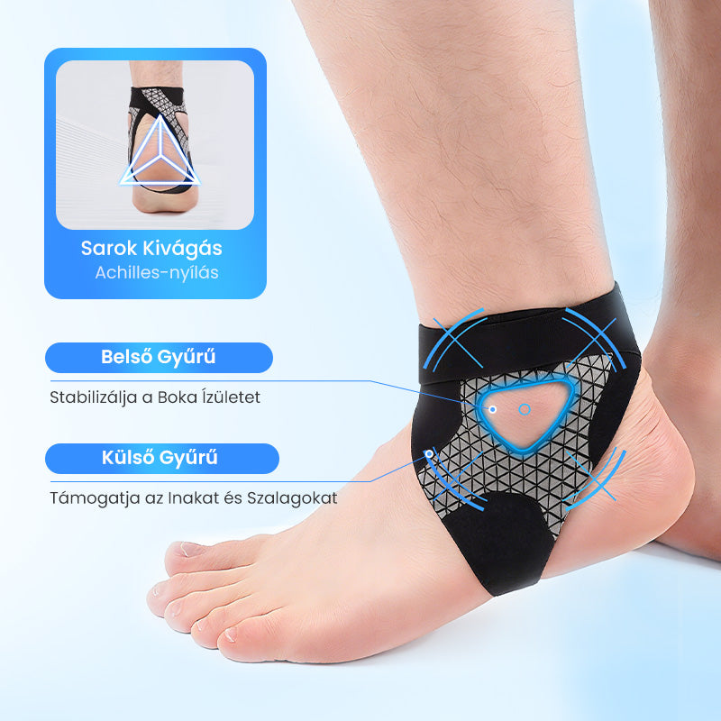 SPECIÁLIS MEGERŐSÍTETT TÁMOGATÁS: A rugalmas támasztórudak alkalmazkodnak a boka természetes íves alakjához, így speciális védelmet nyújtanak az ízületeknek, szalagoknak és inaknak. Oldalirányú stabilitást biztosítanak, és segítenek megelőzni a túlzott kifordulást, csökkentve ezzel a fizikai aktivitás során bekövetkező rándulások kockázatát.