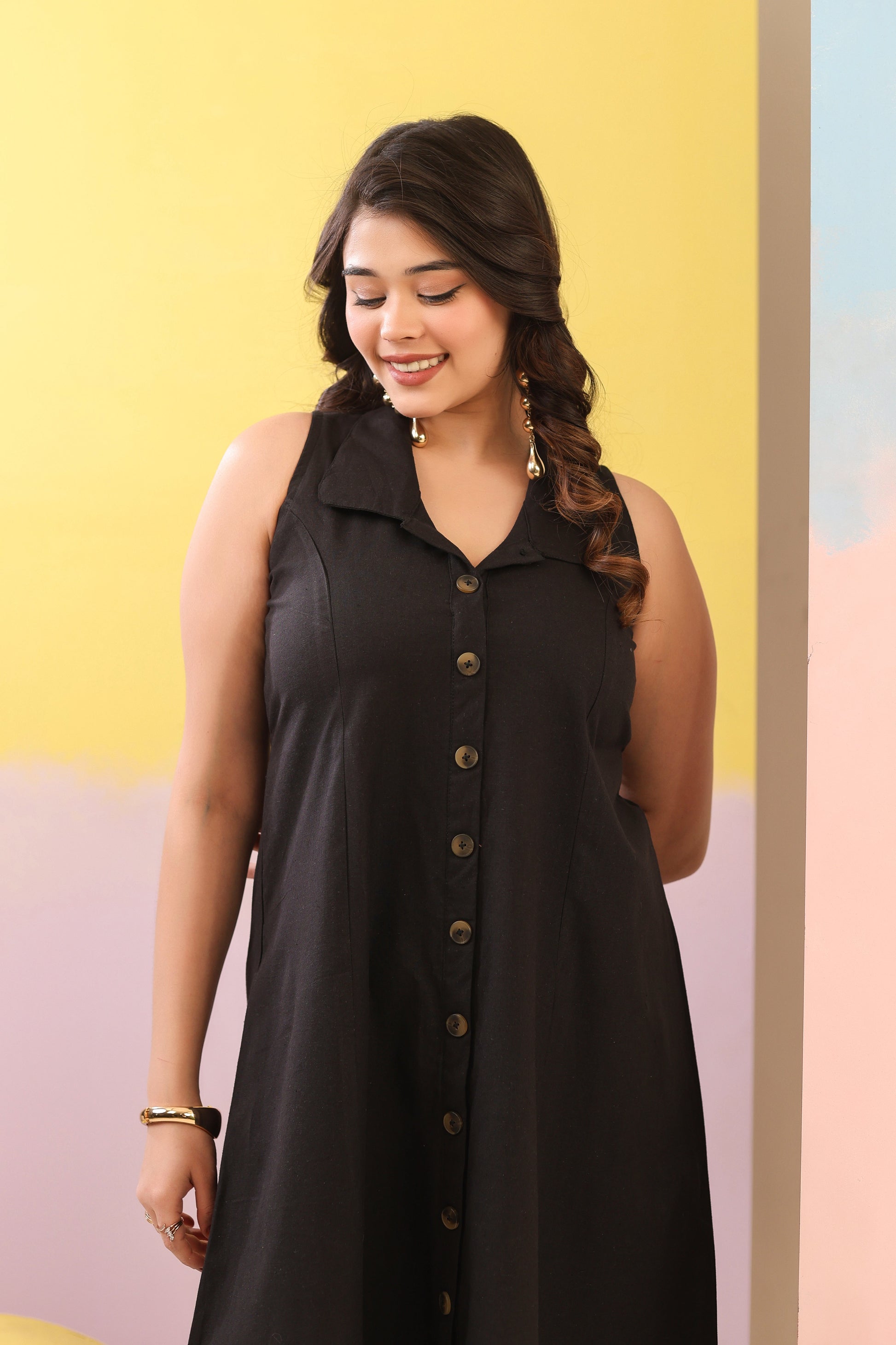 Dobd fel ruhatárad fekete pamutvászon ruhánkkal! Minőségi pamut és lenvászon keverékéből készült, ez a ruha kényelmes és lélegző, miközben stílusos is. Tökéletes bármilyen alkalomra, ez a ruha kötelező darab minden divatorientált egyén számára.