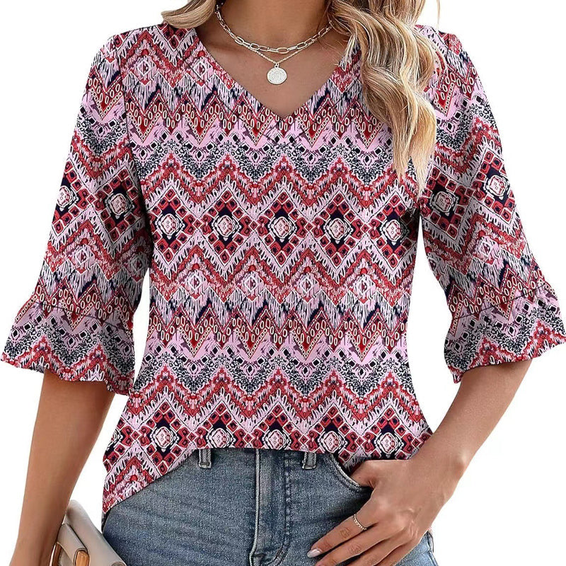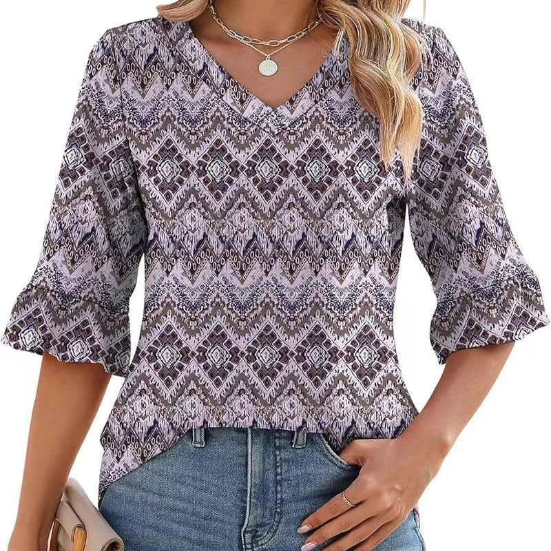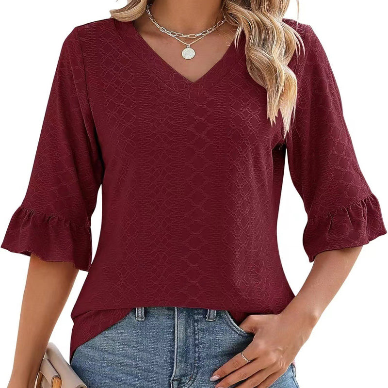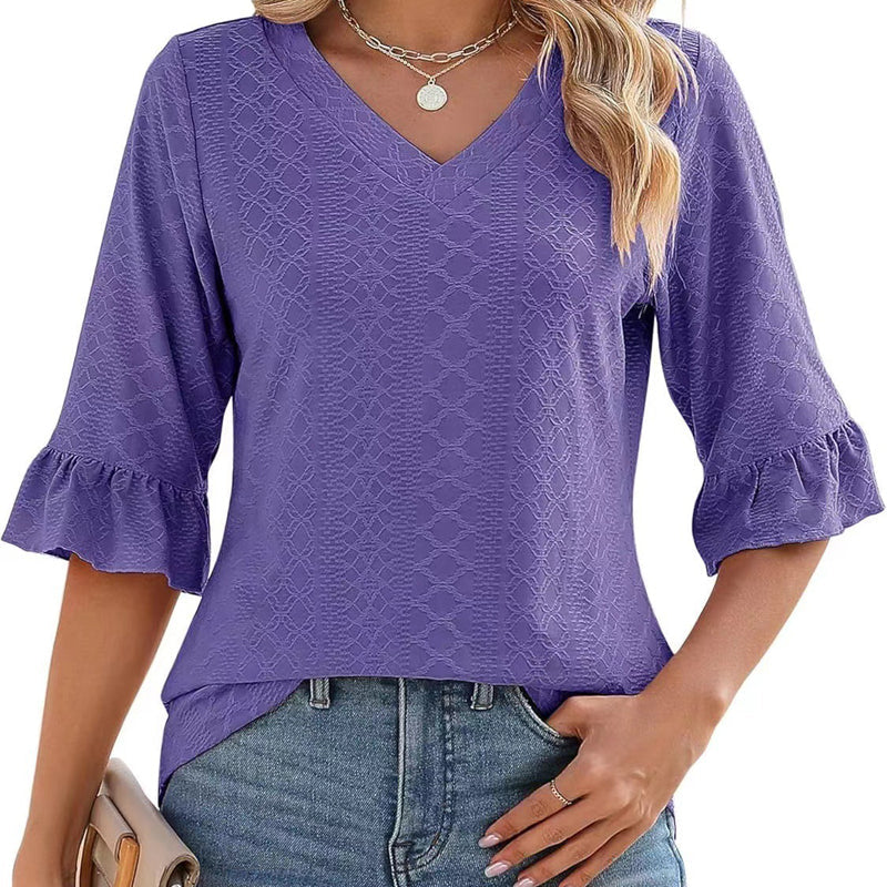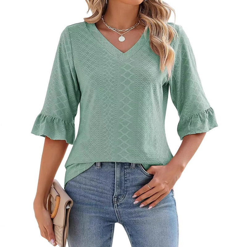 ❤️2025 Új Termékek❤️Elegáns Női Fodros Ujjú V-nyakú Felsők