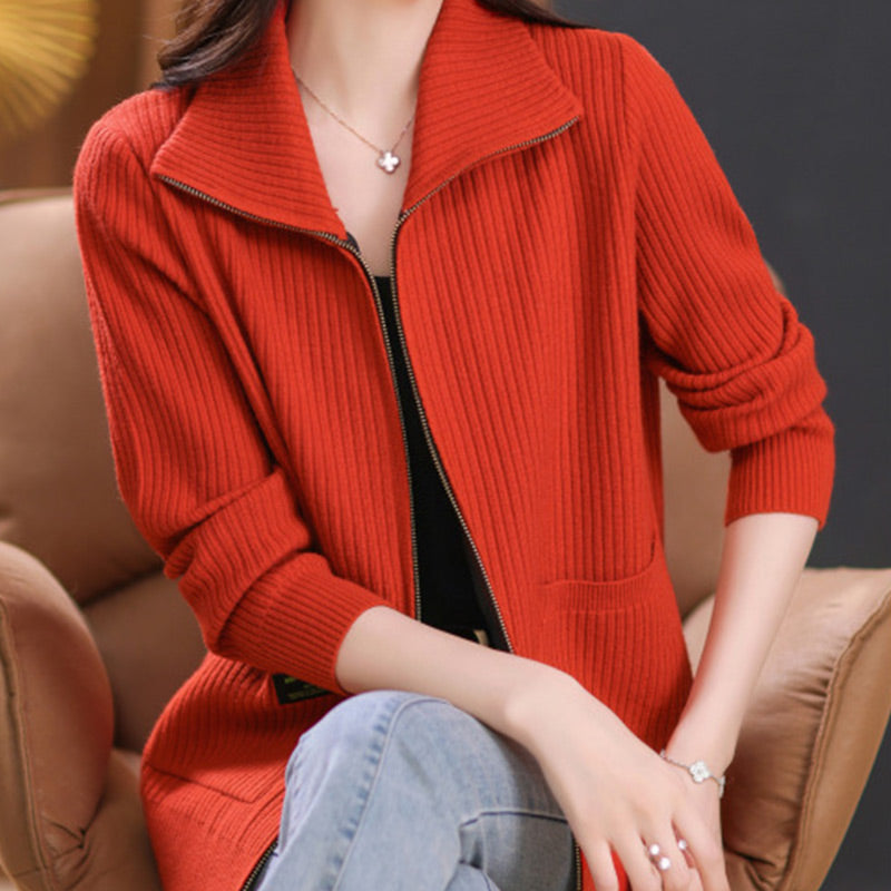 CIPZÁRÁS: A praktikus cipzáras zár praktikusságot kölcsönöz ennek a kötött kardigánnak, lehetővé téve a könnyű fel- és levételt. Állítsd be a cipzárt a kényelmednek megfelelően, akár extra melegre, akár lazább megjelenésre vágysz.