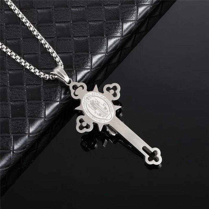 A kelta kereszt közepén elhelyezett Szent Benedek-érmet a gonosz befolyások elleni hatékony eszköznek tartják.
