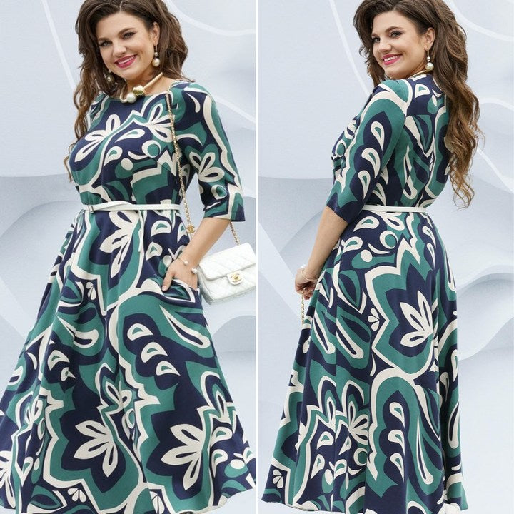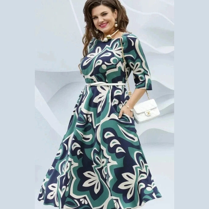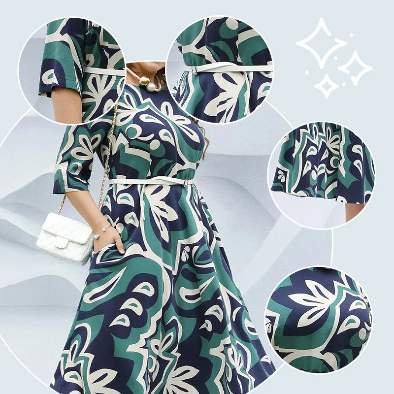 Ez a ruha látványos és felejthetetlen képet hoz létre számodra, és a fényes és szokatlan minta nem hagy észrevétlenül. Szűk sziluett ruha melltartóval, szűk ujjú, egy 3/4-es varrással. Viseljen trapéz alakú szoknyát, oldalt zsebekkel. A ruhán felvehető cipzár található. A ruha további eleme a dekoratív fehér öv.