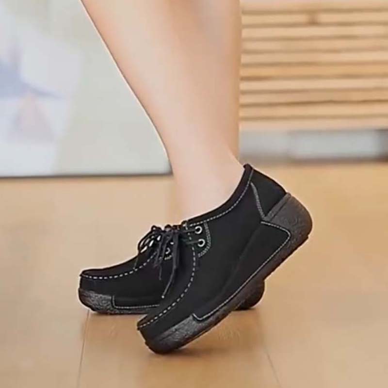 Kissé megemelt, vastag, lapos talp – A platform talp 3–5 cm-es emelést biztosít, javítva a testtartást és finoman megnövelve a magasságot anélkül, hogy a stabilitás rovására menne. Egyenletesen osztja el a súlyt, csökkenti a lábív és a sarok terhelését, valamint párnázást biztosít. Gumi anyagából készült, csúszásmentes és tartós, így tökéletes városi utcákra, bevásárlásokra vagy hosszabb ideig tartó alkalmi viseletre.