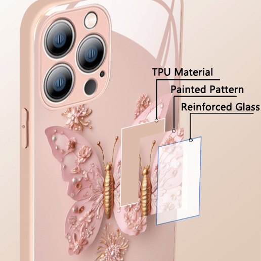 Lapos üvegtok 3D pillangó mintával, iPhone kompatibilis