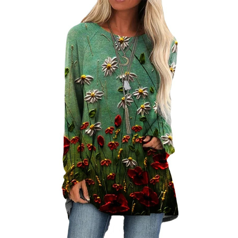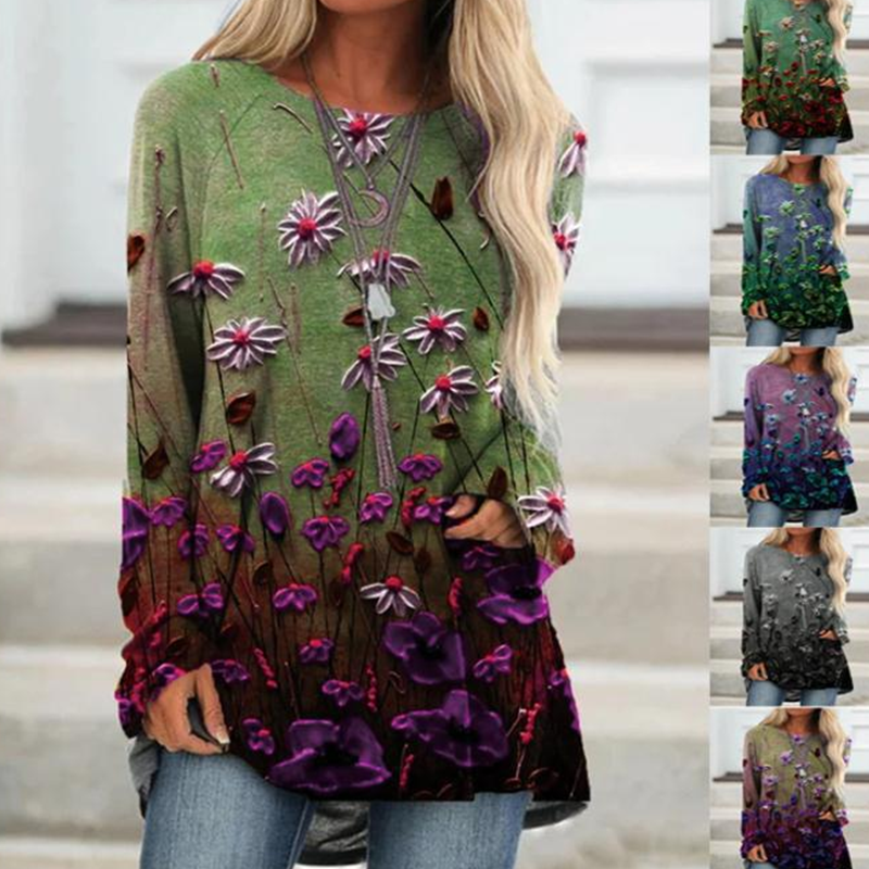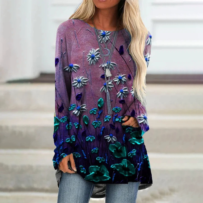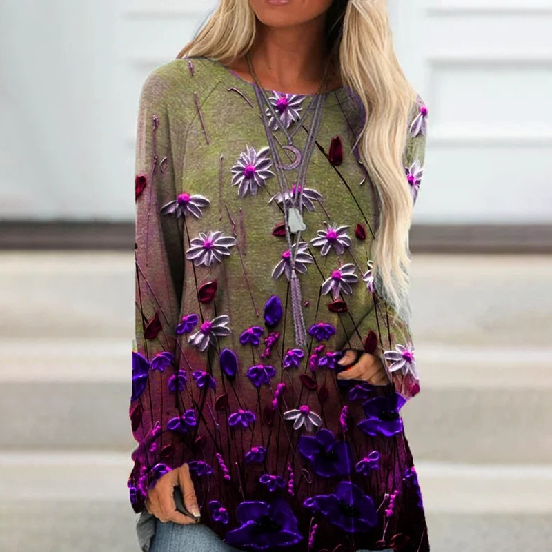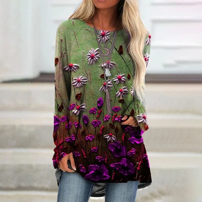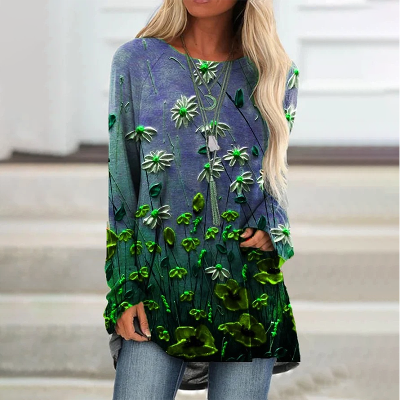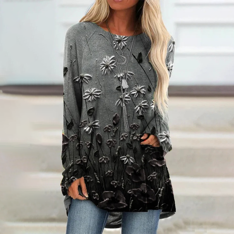 Elegáns, bő blúz hosszú ujjal és mintával