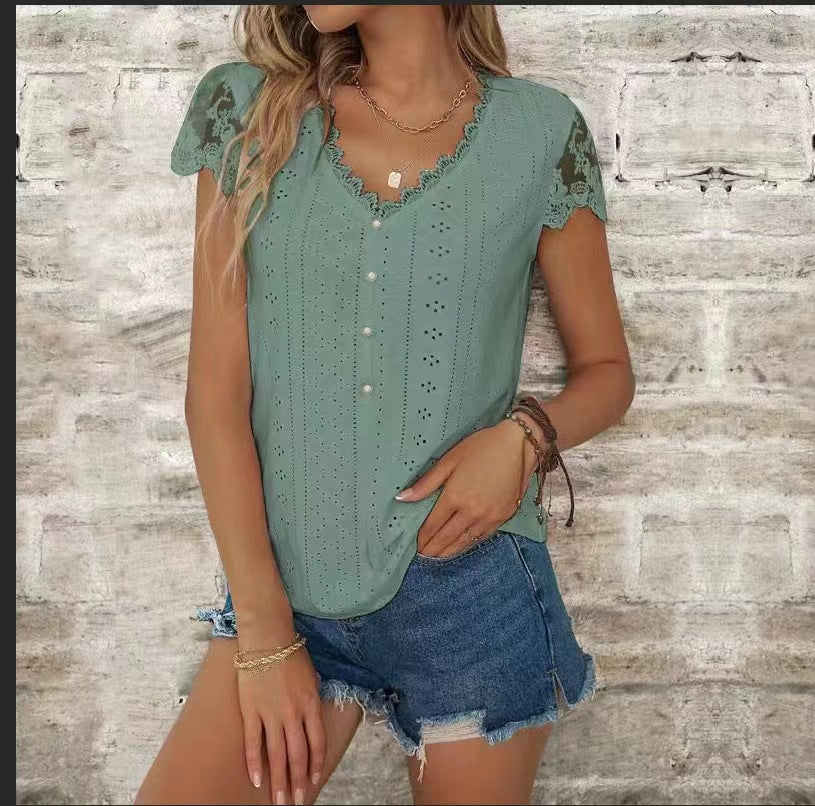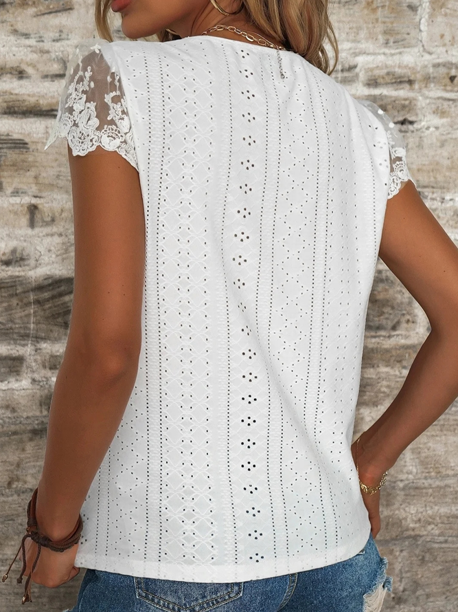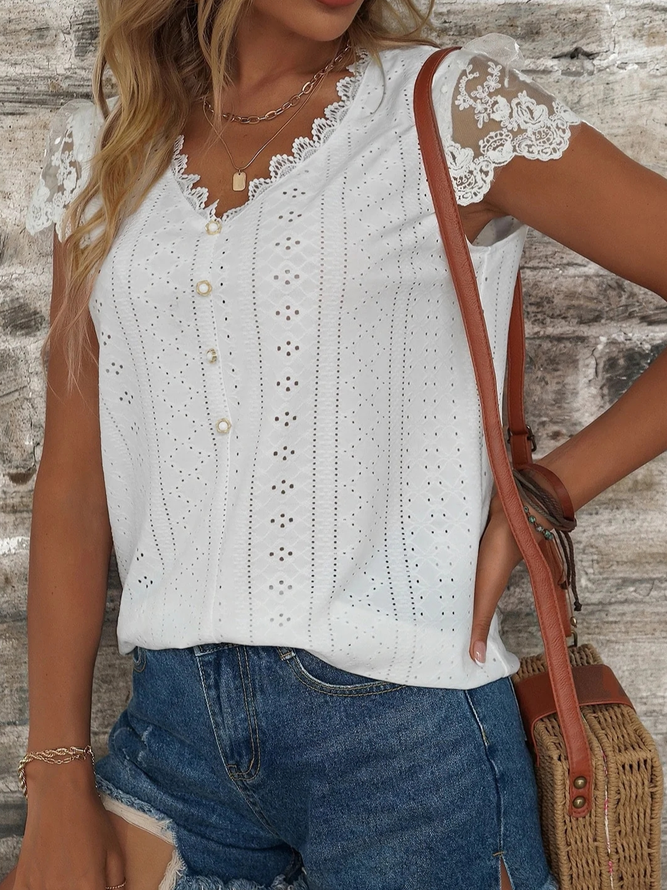 Lezser V-nyakú vászoncsipke légáteresztő gombos fehér alkalmi ing