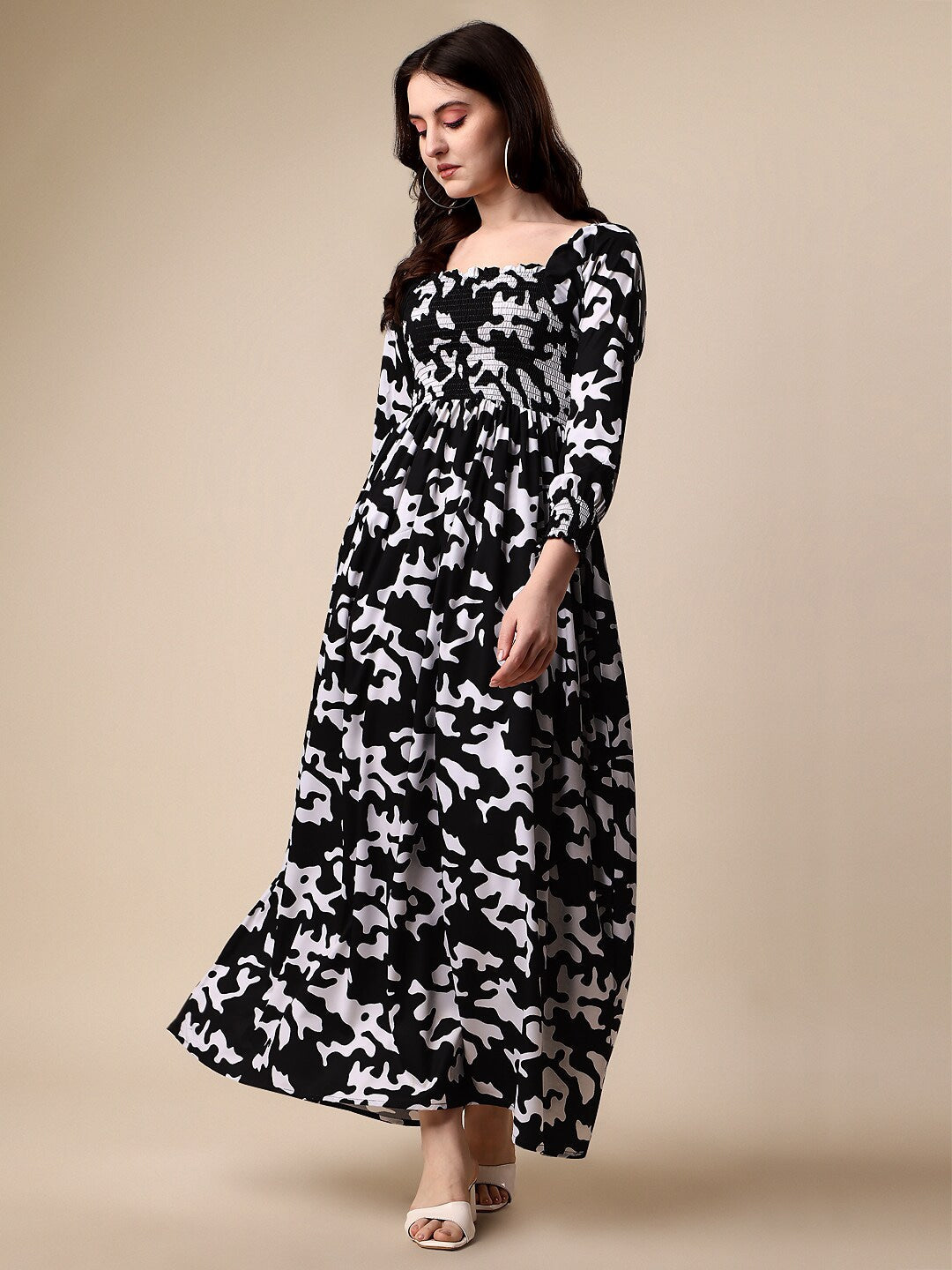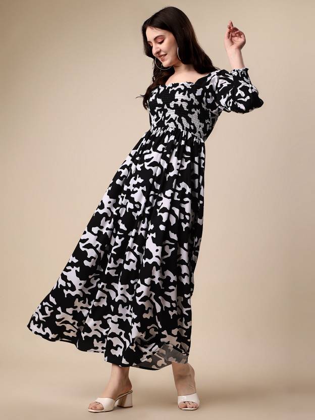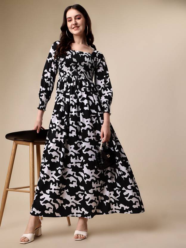 - Fekete-fehér állatmintás maxi ruha