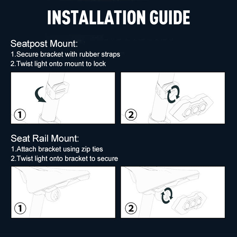 SZYBKI MONTAŻ: Obsługuje wiele pozycji montażowych, takich jak sztyca i szyna siodełka, zaprojektowany z myślą o łatwym montażu i demontażu bez dodatkowych narzędzi, zapewniając elastyczną i bezpieczną konfigurację.