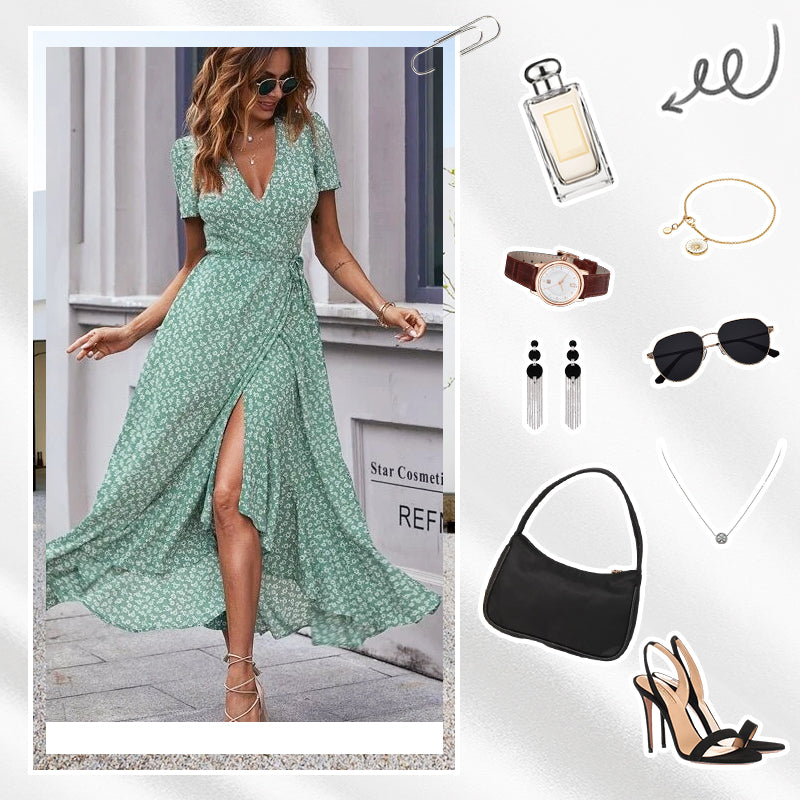 A készlet tartalma: 1×zöld, légies maxi ruha